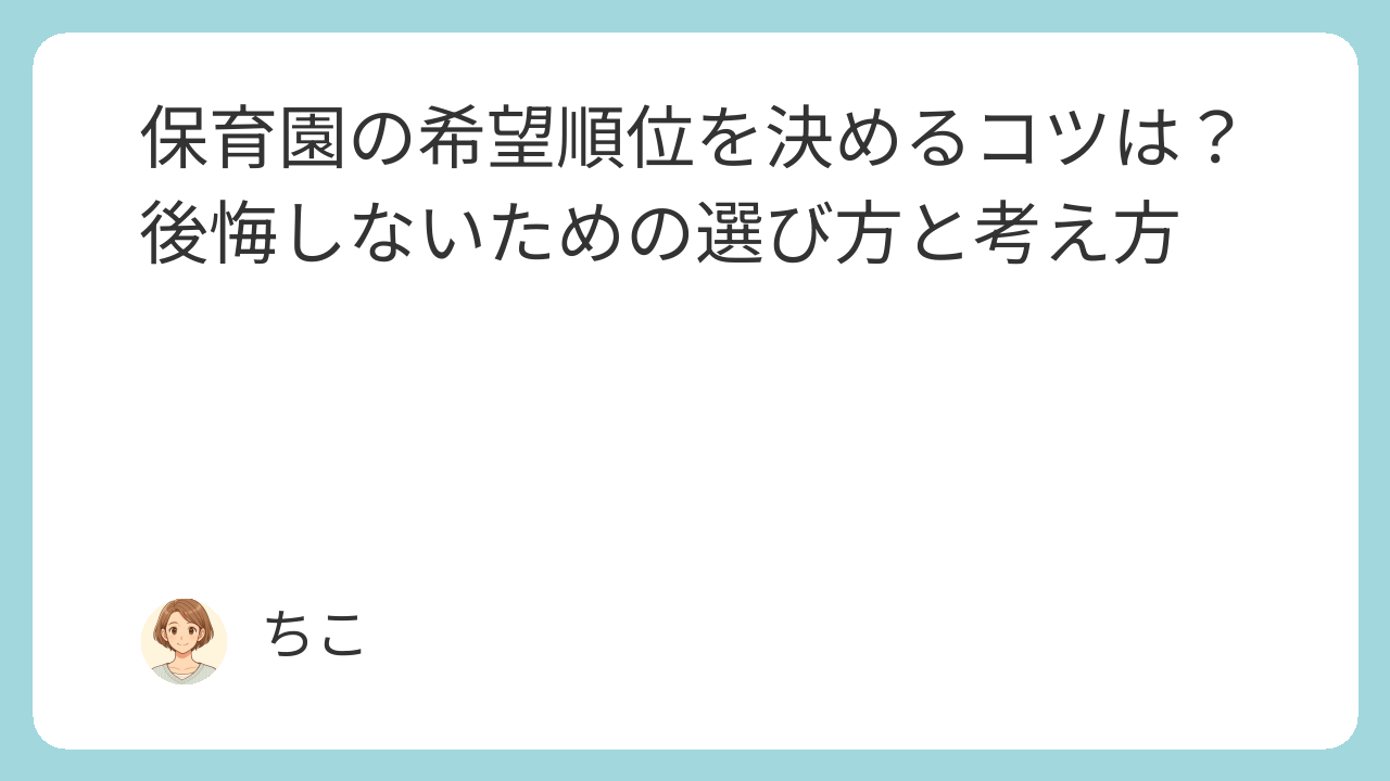 この記事では、保育園の希望順位を決めるときの考え方やコツをわかりやすく解説します。
