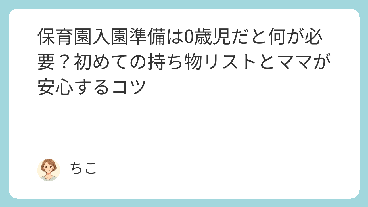 初めての保育園入園準備、特に0歳児となると「何をどこまで用意すればいいの?」と戸惑うママやパパも多いでしょう。