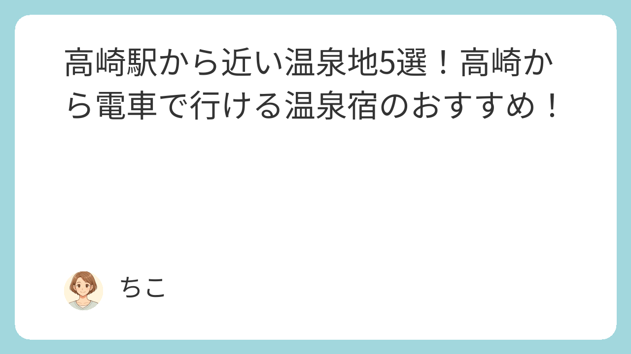 高崎から気軽に電車で行ける温泉5選を紹介しました。